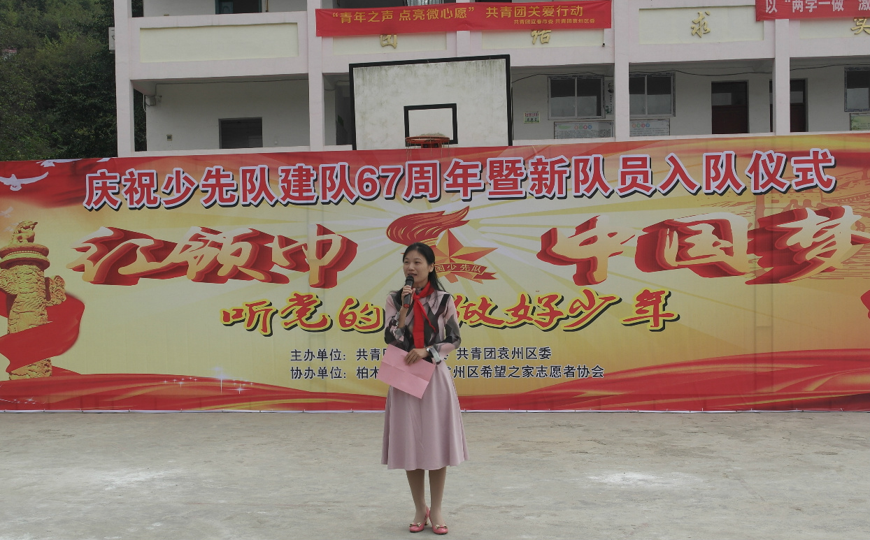 2016年10月13日是中國(guó)少先隊(duì)建隊(duì)67周年紀(jì)念日,為引導(dǎo)廣大少先隊(duì)員繼承和發(fā)揚(yáng)少先隊(duì)的光榮傳統(tǒng),使同學(xué)們?cè)诮?duì)日過(guò)得快樂(lè)而有意義,柏木中心小學(xué)隆重舉行“聽(tīng)黨的話 做好少年”慶祝少先隊(duì)建隊(duì)67周年暨新隊(duì)員入隊(duì)儀式。共青團(tuán)宜春市委副書(shū)記胡玲、共青團(tuán)袁州區(qū)委副書(shū)記賴(lài)如宜、柏木鄉(xiāng)黨委副書(shū)記團(tuán)委書(shū)記賴(lài)柳如等應(yīng)邀出席。