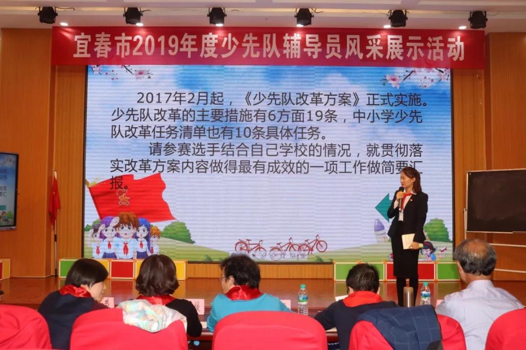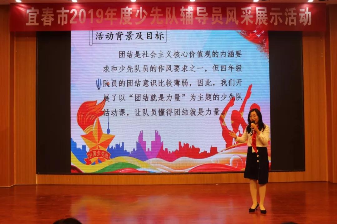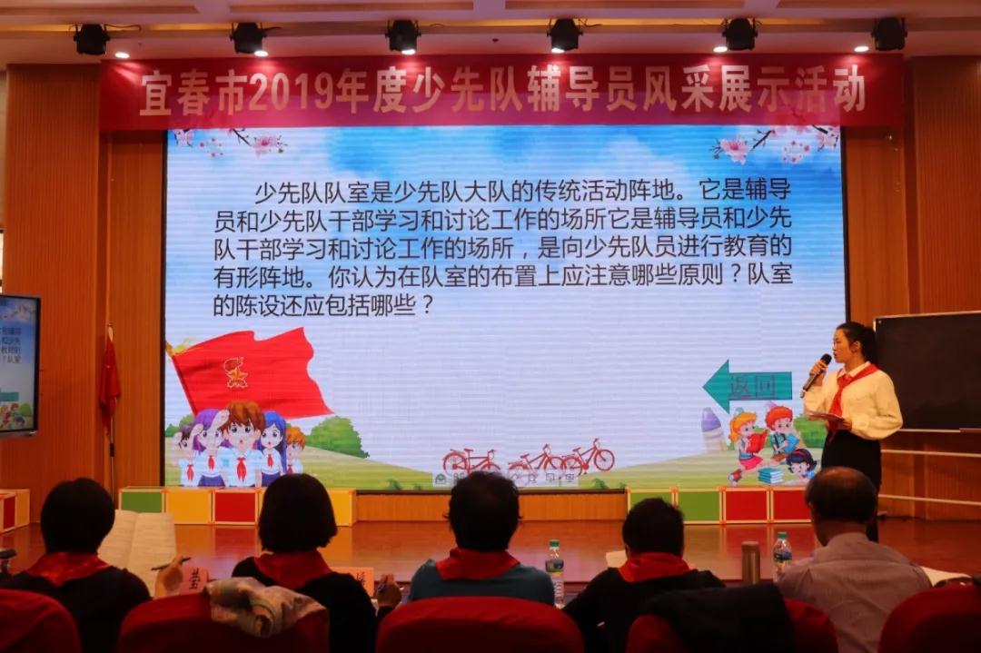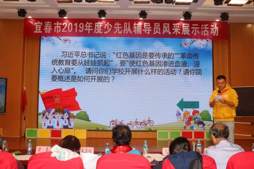 為深入學(xué)習(xí)習(xí)近平新時(shí)代中國(guó)特色社會(huì)主義思想,學(xué)習(xí)宣傳貫徹習(xí)近平總書(shū)記致中國(guó)少年先鋒隊(duì)建隊(duì)70周年賀信精神,進(jìn)一步提高我市廣大少先隊(duì)輔導(dǎo)員綜合素質(zhì),推動(dòng)全市少先隊(duì)工作科學(xué)發(fā)展,2019年11月7日-11月8日,由共青團(tuán)宜春市委、宜春市教育體育局、宜春市少工委聯(lián)合舉辦的2019年全市少先隊(duì)輔導(dǎo)員風(fēng)采展示活動(dòng)在宜春市官園學(xué)校報(bào)告廳舉辦。萍鄉(xiāng)市少先隊(duì)總輔導(dǎo)員邱耀明、九江市少先隊(duì)總輔導(dǎo)員萬(wàn)瑩、新余市少先隊(duì)總輔導(dǎo)員王玉媛、宜春市少先隊(duì)總輔導(dǎo)員熊武、中國(guó)群眾文化學(xué)會(huì)會(huì)員、副研究館員李仁輝擔(dān)任此次大賽評(píng)委。