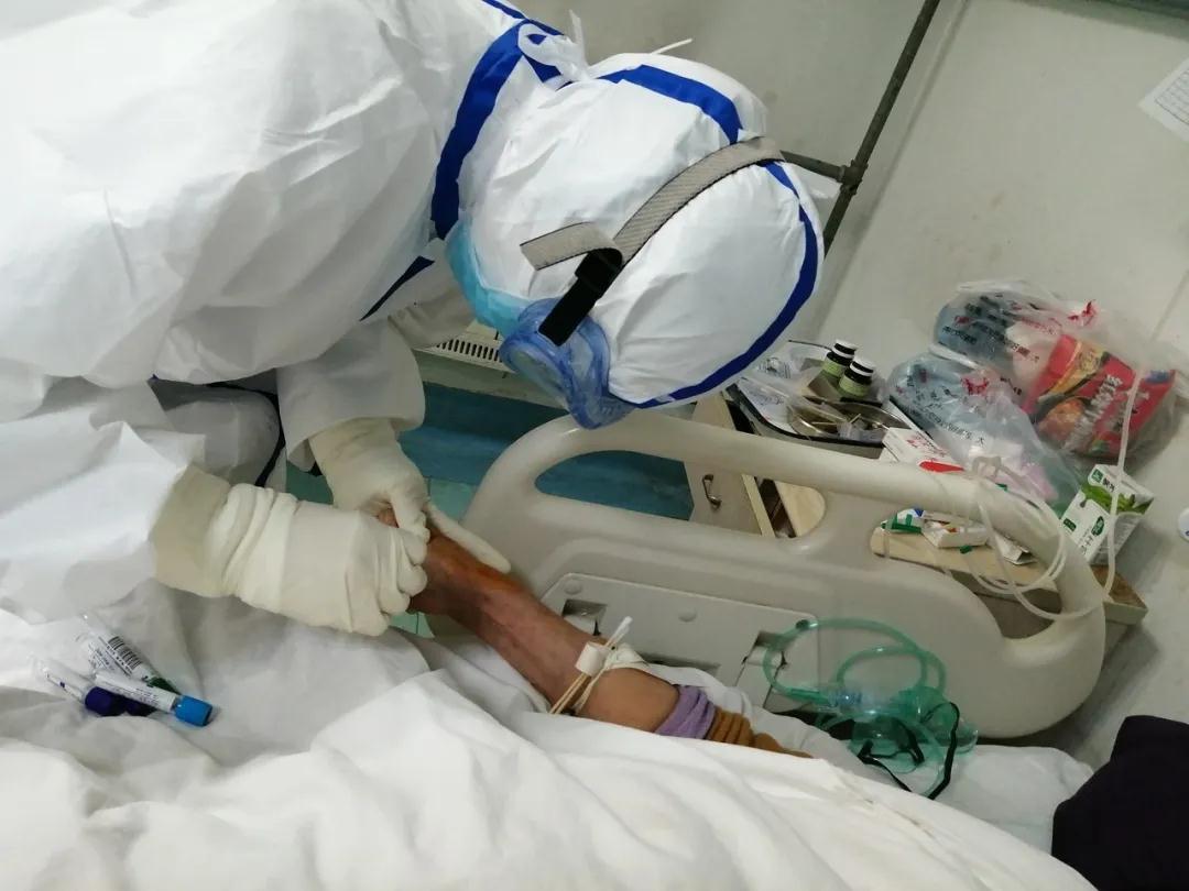 有一天病區(qū)來(lái)了兩位病人,夫妻倆是由兩個(gè)女兒陪著來(lái)的,兩個(gè)女兒也感染了。大女兒已經(jīng)出現(xiàn)氣喘,也得住院,老人來(lái)的時(shí)候血氧一直不太好,心率也有點(diǎn)快,老人的兩個(gè)女兒,一直在他邊上跟他說(shuō)“爸爸,堅(jiān)持住,加油!”?吹酱饲榇司埃瑮罹昃o握他們的手說(shuō):“放心!有我們?cè)冢覀內(nèi)w醫(yī)護(hù)人員一定全力以赴!”。她用最樸素的話(huà)語(yǔ)給患者和家屬定心,也用最真誠(chéng)的行動(dòng)感動(dòng)著每一個(gè)生命。